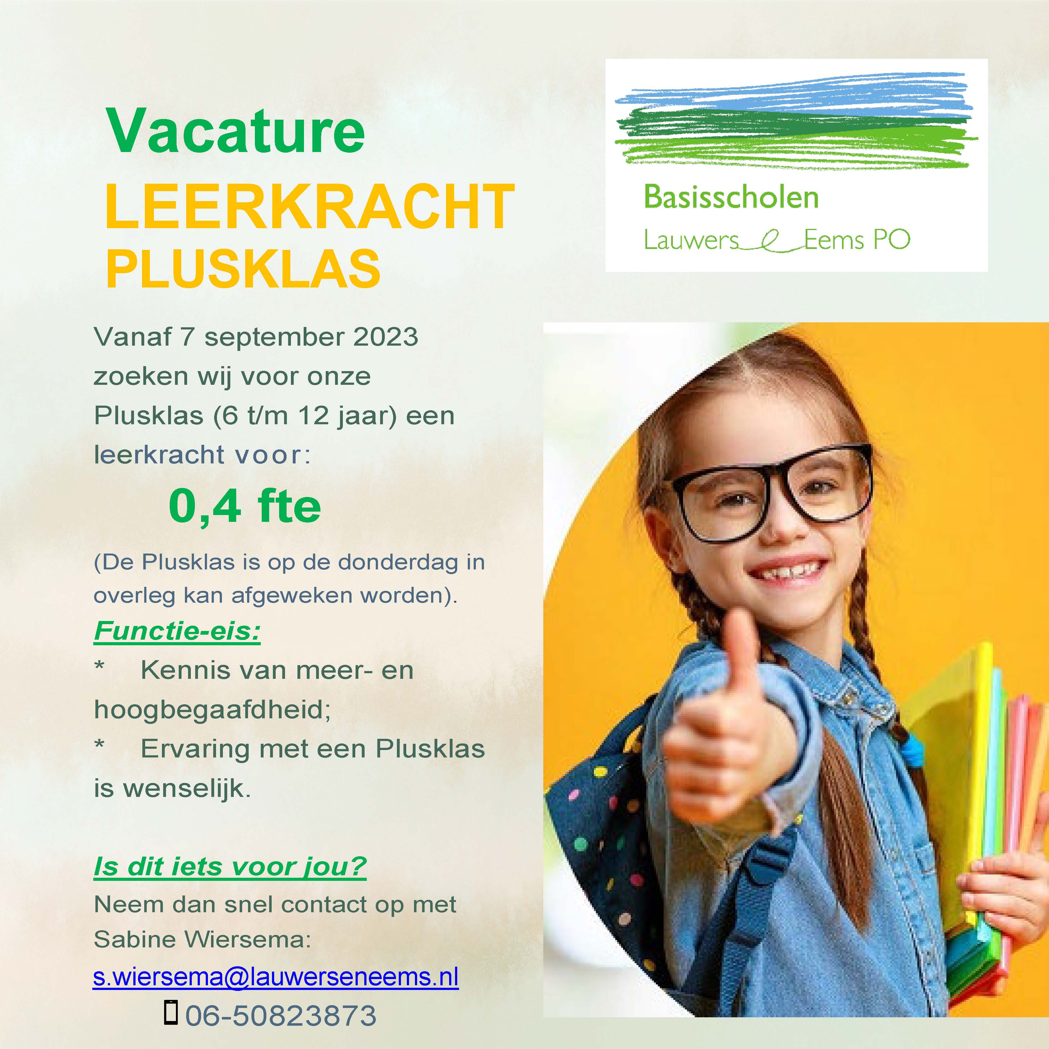 - Vacature 0,4 fte Plusklas